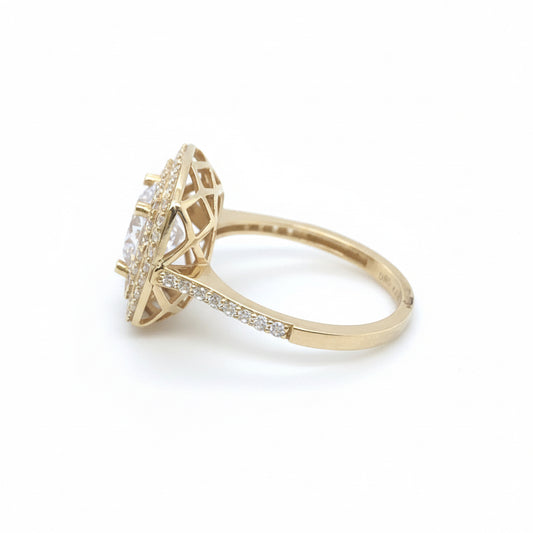 Ring aus 585 Gelbgold mit Zirkonia – klassisches Steinrahmen-Design